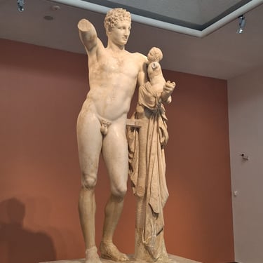 Після прогулянки археологічною зоною ми відвідаємо археологічний музей Олімпії. Тут представлена велика колекція бронзових виробів і давньої зброї, знаменита статуя Ніки — богині перемоги, а також величні фронтони храму Зевса. Справжньою перлиною музею є статуя Гермеса з маленьким Діонісом — один із найвідоміших шедеврів античної скульптури. На завершення ми побачимо римський зал із пам’ятками часу Римської імперії.